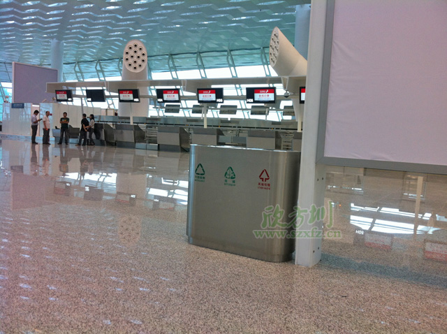 為了裝飾寶安國(guó)際機(jī)場(chǎng)T3航站樓和GTC大樓的環(huán)境衛(wèi)生,深圳市機(jī)場(chǎng)股份有限公司于2013年4月在我公司訂購(gòu)了2733個(gè)垃圾桶,包括有大型不銹鋼垃圾桶、自棄桶、阻燃桶和接水桶等多種材質(zhì)的垃圾桶。
