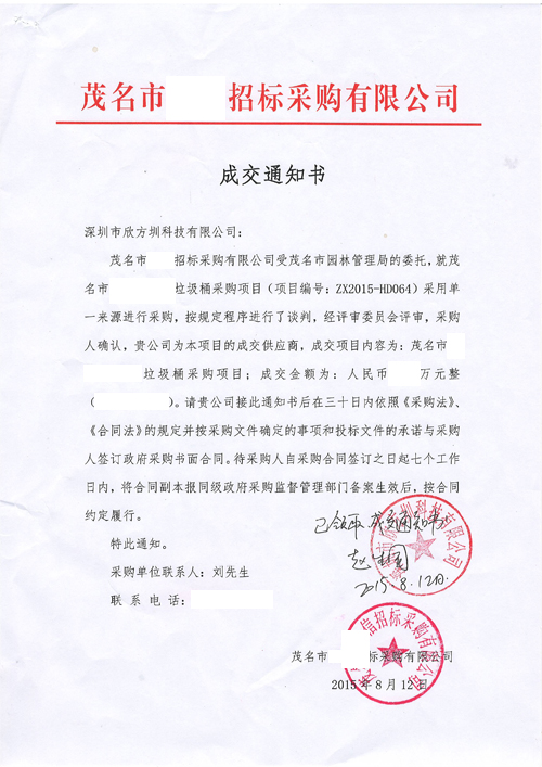 欣方圳擁有專業(yè)的5到10人的招標(biāo)小部門工程,負(fù)責(zé)收集全國各地市政單位的招標(biāo)信息。完整的招標(biāo)流程,從咨詢,報名,核算成本,派遣核心部門業(yè)務(wù)人員參與競價投標(biāo)。茂名市的競標(biāo)招標(biāo),可謂是一波三折,驚心動魄。得知茂名有競價投標(biāo),仿大理石垃圾桶需求500個左右,金額達(dá)到幾十萬。欣方圳派遣了兩名業(yè)務(wù)人員,一名是業(yè)務(wù)經(jīng)理,一名是業(yè)務(wù)員。開著欣方圳公司的公用車輛,火速趕往茂名投標(biāo)。參與惡性價格競爭投標(biāo),業(yè)務(wù)人員核算成本不馬虎,必須得精確到位。事先準(zhǔn)備打印出來的一頁,一頁的標(biāo)書,疊在一起,用特制膠水把它整理整一本書籍。書籍完整后還得,一頁,一頁的紙上蓋上欣方圳公司的公章,方能生效。來來回回上百個頁面,蓋個章蓋得我手都麻木了哈!驅(qū)車來到茂名時,到了傍晚。暫行住宿一晚,迎接明天的好運。興致勃勃的業(yè)務(wù)員,在大廳苦等了兩個鐘,告知今天的投標(biāo)取消。原因只有一個,本來是有四家公司報名,到場的只有兩家,不符合招標(biāo)程序,故此取消!招標(biāo)的評審團委員會,按照公平,公正,合理等程序進(jìn)行。招標(biāo)內(nèi)容要從編號,材質(zhì),工期,價格,等幾大方面經(jīng)評審團委員會進(jìn)行綜合評審,才能知曉。無奈的業(yè)務(wù)部同事,只有等待推遲的日期再來。半個月后,欣方圳的業(yè)務(wù)部同事再次驅(qū)車趕往茂名競價投標(biāo)。本次的投標(biāo)有N家公司競投,業(yè)務(wù)部同事亞歷山大,帶著公司領(lǐng)導(dǎo)的期望出行,信心滿滿。垃圾桶競價投標(biāo),惡性競爭特大,都是在比拼價格,材質(zhì),做工等綜合。當(dāng)天,競標(biāo)的人員都拼齊到場,競標(biāo)程序開始。在場的人員,都把各自的資料,樣板,都要呈現(xiàn)在各位評審團委員會前擺放,等待他們的評估結(jié)論。時間一分一秒的過去,業(yè)務(wù)部同事人員的心撲通,撲通的跳個不停?;湔l家,鹿死誰手,不得知曉!皇天不負(fù)有心人,一分耕耘,一分收獲,戰(zhàn)報在欣方圳公司里面的QQ群傳來捷報。此次中標(biāo)者,深圳市欣方圳科技有限公司,經(jīng)過陪審團的評估,價格,材質(zhì),做工等多方面得出結(jié)論勝出?。?!