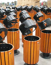 欣方圳鋼木垃圾桶,園林景區(qū)環(huán)境提升的好助手