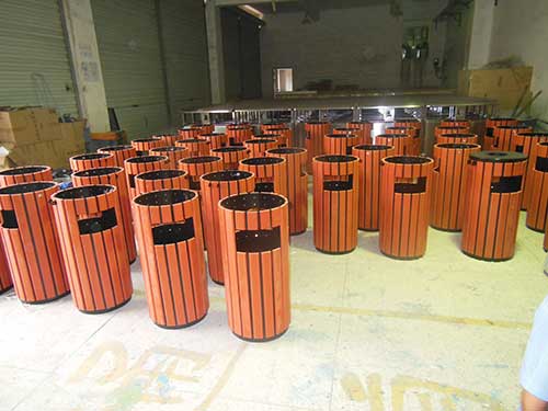 2.鋼木垃圾桶工藝:鋼木垃圾桶在完成鋼材支架和實木貼裝過后,還會采用先進噴塑技術,對表面進行防腐處理,同時還要經(jīng)歷耐高溫測試,進一步提升鋼木垃圾桶的品質(zhì)。