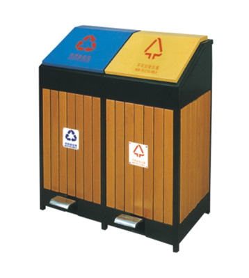 G67搖蓋分類鋼木垃圾桶