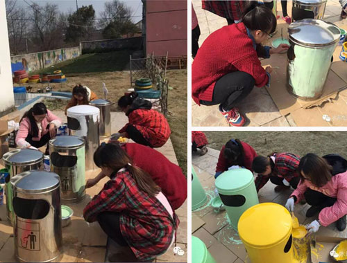 為了進一步提升校園文化,創(chuàng)建更加優(yōu)美的育人環(huán)境,推動幼兒園建設(shè)朝著凈化、美化、規(guī)范化的方向發(fā)展,幼兒園青年教師對園內(nèi)垃圾桶進行美化、裝飾。 教師們先選稿、討論設(shè)計方案,再畫底稿,最后調(diào)油漆上色。經(jīng)過老師們的巧手布置,原本單調(diào)呆板的垃圾桶一個個鮮活起來。孩子們來園看到一個個五彩繽紛的垃圾桶興奮極了,非常樂意把垃圾撿起來扔進漂亮的垃圾桶里。 據(jù)悉,本次活動是該園繼設(shè)計創(chuàng)意家園聯(lián)系欄、廢舊輪胎變廢為寶、裝飾走廊墻飾等活動后的又一次環(huán)境創(chuàng)新活動。這些活動不僅有效促進了該園教師環(huán)境創(chuàng)設(shè)理念的更新、提升了創(chuàng)設(shè)技能和品位,同時促進了教師之間的相互學(xué)習(xí),認識到了環(huán)境創(chuàng)設(shè)對幼兒發(fā)展的價值,更為自己積累了有益的經(jīng)驗,為以后更好的開展環(huán)境創(chuàng)設(shè)打下堅實的基礎(chǔ)。