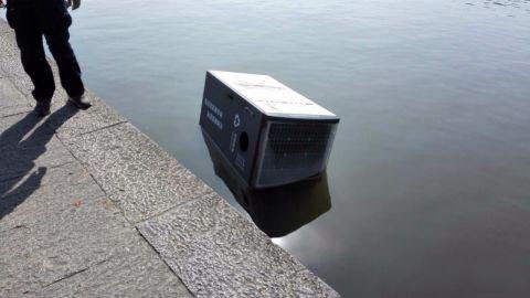 原來,趙某推進(jìn)西湖的垃圾桶,是去年年初投入使用的太陽能垃圾桶,在西湖邊只有十臺。警方從垃圾桶生產(chǎn)廠家了解到,這款垃圾桶售價(jià)為29800元,目前還需要物價(jià)局的工作人員進(jìn)行一次價(jià)格鑒定。趙某因?yàn)樽约旱牟焕碇切袨?,目前已被警方刑事拘留?br /> 從去年2月分開始,十組貼有西湖十景繪畫的太陽能智能壓縮垃圾箱亮相杭州西湖白堤。據(jù)介紹,垃圾箱通過不同投放口進(jìn)行垃圾分類引導(dǎo),內(nèi)部設(shè)有壓縮系統(tǒng),用箱頂?shù)奶柲茈姵匕骞╇姡勺詣?dòng)對投入的垃圾進(jìn)行壓縮。