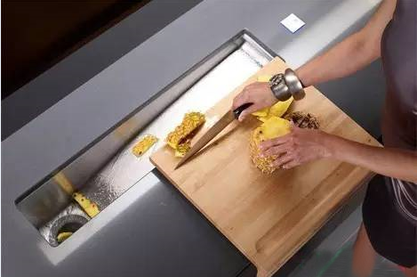 水槽是個(gè)整合的垃圾處理裝置,水槽采用了傾斜設(shè)計(jì),垃圾會沿著斜坡下沉。另外,這個(gè)水槽還采用了靈活的觸摸技術(shù),清洗周期由固定不變的藍(lán)光顯示,垃圾處理周期由閃爍的藍(lán)光顯示。