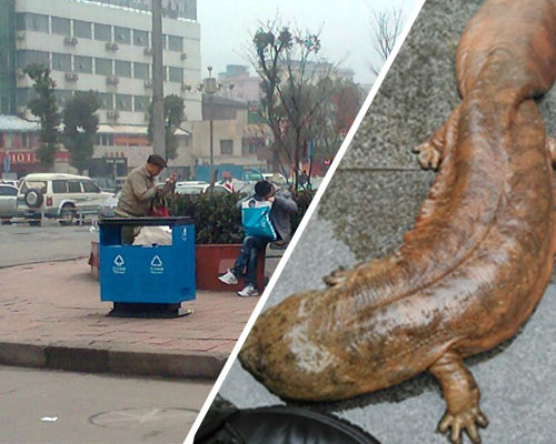 成都火車站環(huán)衛(wèi)垃圾桶爬出娃娃魚(yú)驚呆市民