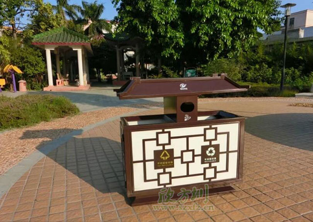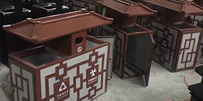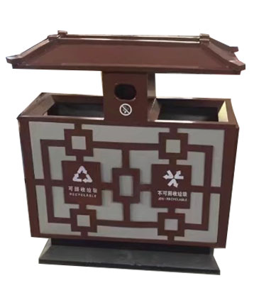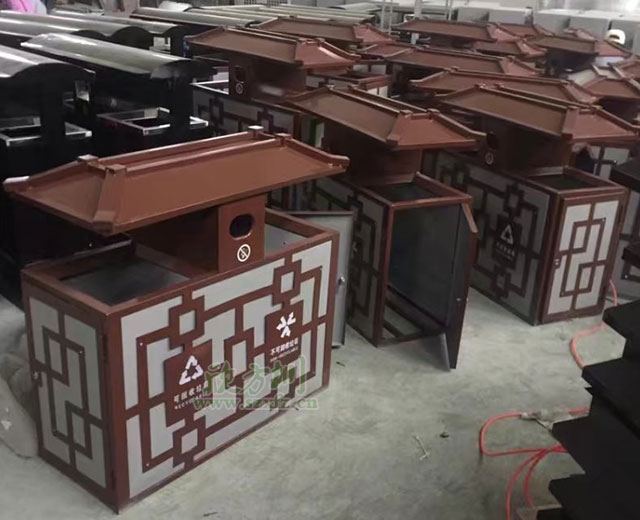 中國風戶外鋼制分類垃圾桶工廠批量生產(chǎn)圖