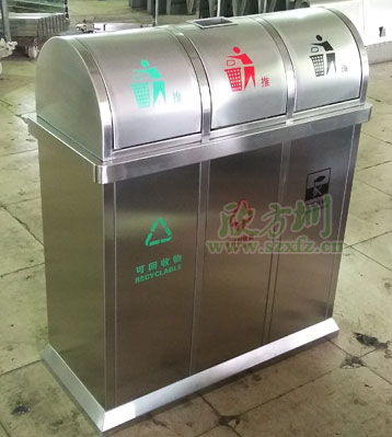 不銹鋼三分類搖蓋垃圾桶桶頭圖