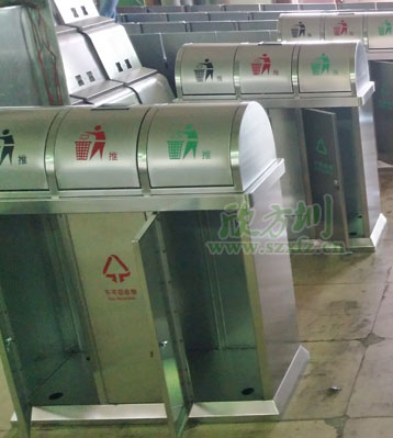不銹鋼垃圾桶是一種存放垃圾的容器,使用不銹鋼制作而成。因?yàn)椴讳P鋼耐空氣、蒸汽、水等弱腐蝕介質(zhì)和酸、堿、鹽等化學(xué)浸蝕性介質(zhì)腐蝕,所以不銹鋼垃圾桶耐用性高。全身不銹鋼制作的垃圾桶還具有防火功能,堅(jiān)固耐用。 材質(zhì):不銹鋼常按組織狀態(tài)分為:馬氏體鋼、鐵素體鋼、奧氏體鋼、奧氏體-鐵素體(雙相)不銹鋼及沉淀硬化不銹鋼等。另外,可按成分分為:鉻不銹鋼、鉻鎳不銹鋼和鉻錳氮不銹鋼等。