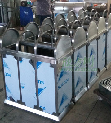 欣方圳不銹鋼三分類搖蓋垃圾桶工廠生產(chǎn)圖