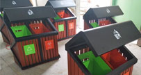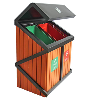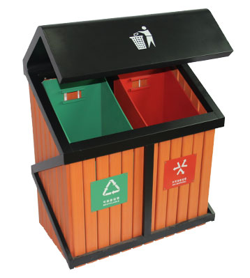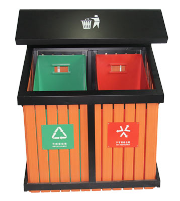 欣方圳S形戶外鋼木分類垃圾桶批量生產(chǎn)圖
