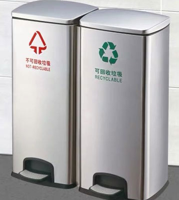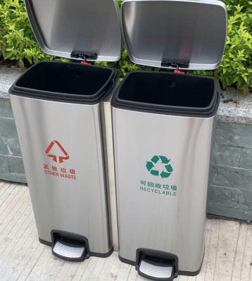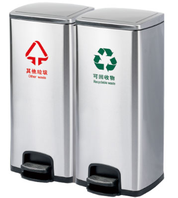 欣方圳60L室內(nèi)不銹鋼腳踏分類垃圾桶批量生產(chǎn)圖