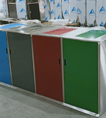欣方圳社區(qū)戶外大容量四分類垃圾桶工廠批量生產(chǎn)圖