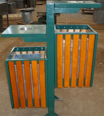 帶廣告牌的G44小區(qū)戶外鋼木分類垃圾桶