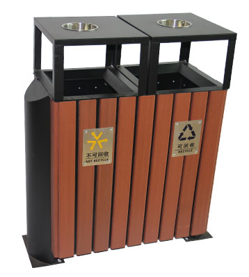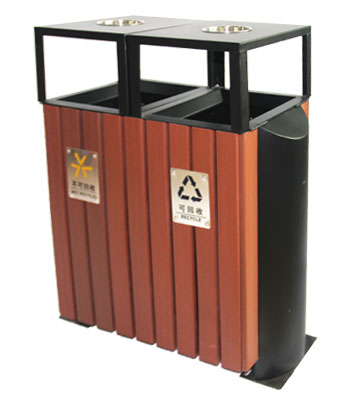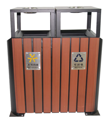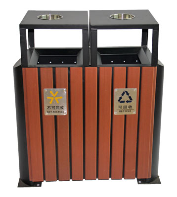 欣方圳環(huán)保鋼木分類垃圾桶桶身細節(jié)圖