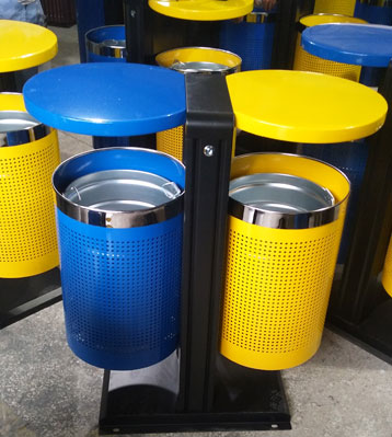 欣方圳戶外鋼板分類垃圾桶工廠批量生產(chǎn)圖