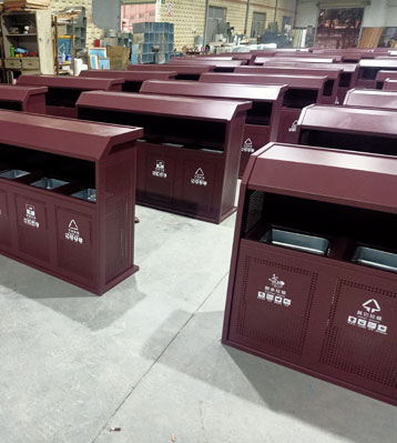 江西南昌園林綠化工程公司在室外分類垃圾桶的選擇上,采購的是當下流行的可回收物、其他垃圾、廚余垃圾、有害垃圾組成的4分法垃圾收集容器。鍍鋅板...